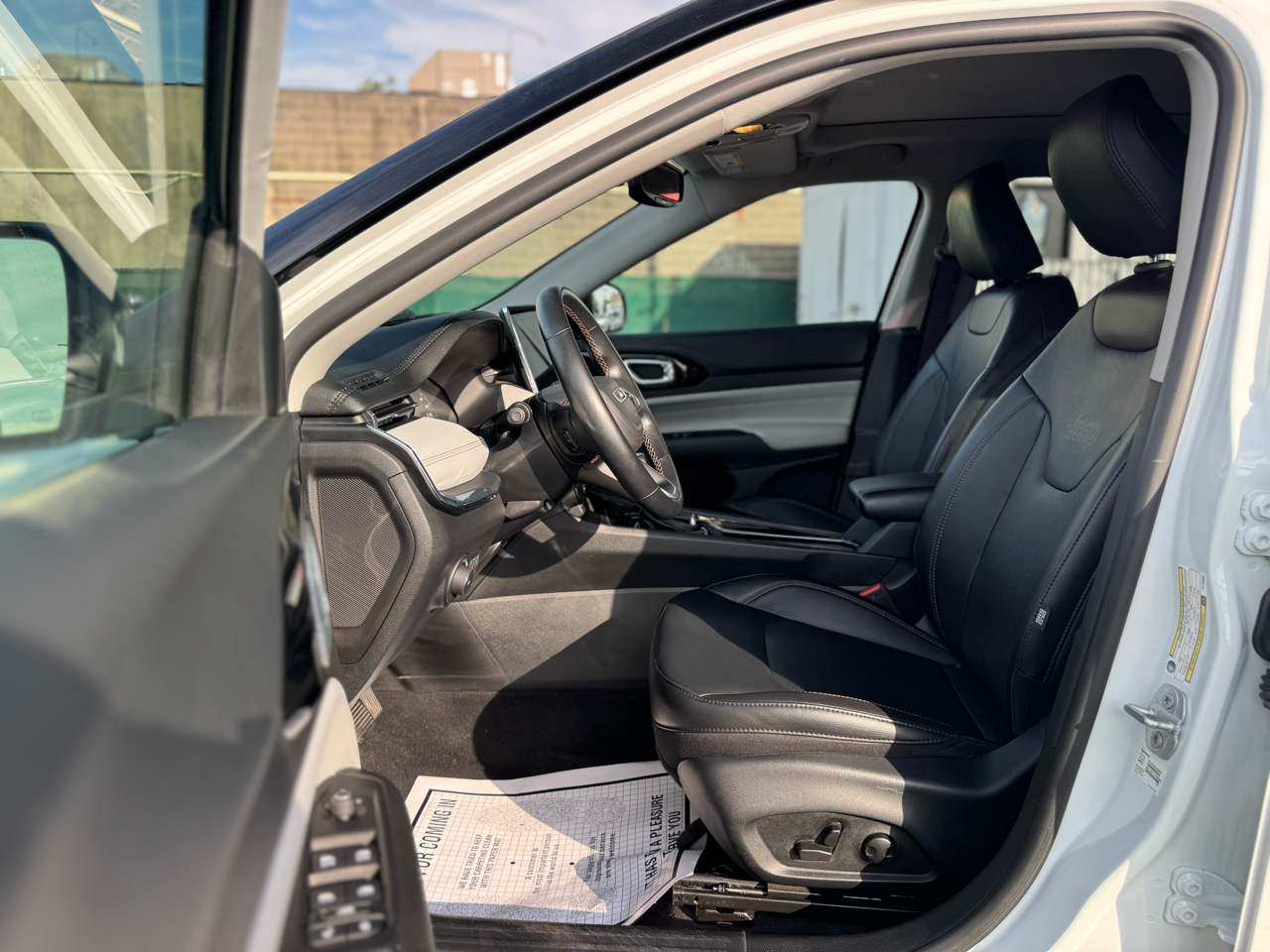 Take a joy ride in this sleek and stylish 2022 White Jeep Compass! Unleash your inner adventurer with the confidence of 4WD/AWD, traction control, and a stability control system that will keep you on the right path no matter where you roam. Safety is paramount with multiple airbags strategically placed throughout the vehicle, as well as ABS brakes and electronic brake assistance for added peace of mind. Slip into the supple leather seats and adjust your perfect position with the multi-adjustable power seat and power lumbar support. Cruise control makes highway driving a breeze while the telescopic steering column ensures comfort for drivers of all heights. Let the automatic headlights and alloy wheels light the way on your journey, while the rearview camera gives you added visibility when backing up. Keep tabs on your vehicle's performance with the trip computer and tire pressure monitor. This Jeep Compass also comes with a Carfax report, so you can hit the road with confidence knowing the vehicle's history is transparent. Ready to make this your next ride into the sunset?